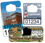 **Price includes full color imprint on one side PLUS consecutive numbering on white, standard conventional plastic hang tag. For chrome polyester or white reflective hangtag: add $.50 each. Add $10 (net)  for each copy change (ie.  change "Student" to "Staff", etc..)